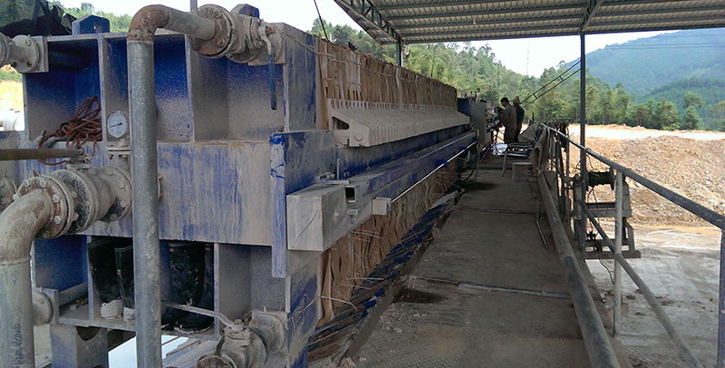 高干度,高產能,廢渣可壓榨至含水率30%以下,低至15%,比普通廂式壓濾機低10個點,比帶式壓濾機低15個點,配置我司兩臺XMYD1500-130PC-400廂式高壓壓濾機可滿足1000m3/d洗砂生產線的廢渣脫水需求。