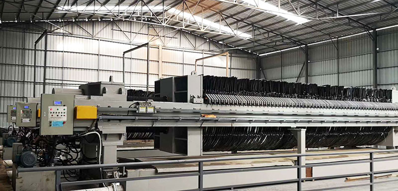 高干度,高產(chǎn)能,廢渣可壓榨至含水率30%以下,低至15%,比普通廂式壓濾機(jī)低10個(gè)點(diǎn),比帶式壓濾機(jī)低15個(gè)點(diǎn),配置我司兩臺(tái)XMYD1500-130PC-400廂式高壓壓濾機(jī)可滿足1000m3/d生產(chǎn)線的廢渣脫水需求。