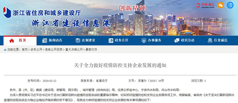 浙江省住房和城鄉(xiāng)建設(shè)廳關(guān)于全力做好疫情防控支持企業(yè)發(fā)展的通知