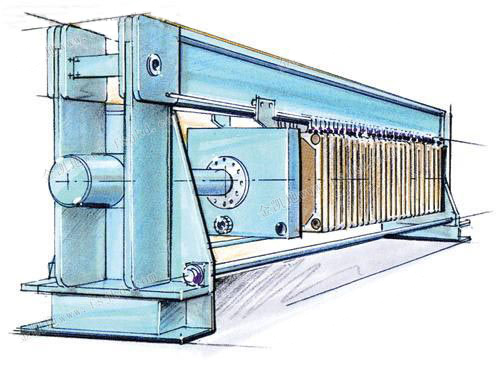 長期以來.壓濾機的自動卸餅始終是一個困擾壓濾機完全自動化的頑癥.由于某些濾料固有的特殊性.導致濾餅與濾布的粘連.卸餅難度的提高.經過長年地研發和經驗地積累.開發了多種成熟的自動卸餅機構.根據不同的物料.選配不同的自動卸餅裝置,實現了由全自動操作取代了最初的人工操作.全自動的卸餅裝置取代了最初的人工卸餅的過渡.大大減小了勞動強度.提高了工作效率.長框架卸餅裝置利用拉板時框架的振動帶動濾布的振動.從而完成快速卸餅,在處理粘性較高的污泥時.一般采用全自動刮刀裝置.通過外力幫助壓濾機卸餅.