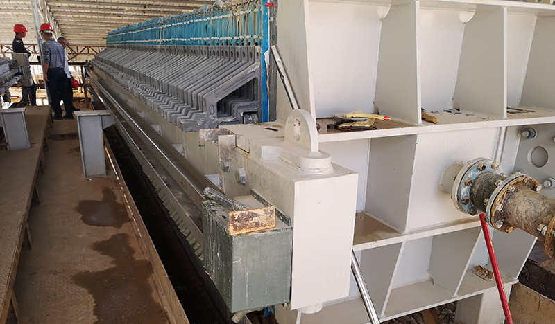 禁止在濾板少于規(guī)定數(shù)量的情況廠開機(jī)工作,以免損壞機(jī)件。廂式壓濾機(jī)加料前檢查濾板排列情況,濾布不能有折疊現(xiàn)象,防止發(fā)生較大滲漏;卸餅后濾板一定要緊靠壓緊排列整齊。待一切正常后方可壓緊濾板加壓過濾,過濾壓力和過濾溫度必須在規(guī)定范圍之內(nèi),過濾壓力過高會引起滲漏,過濾溫度過高塑料濾板易變形,壓濾機(jī)加料時(shí)懸浮液要濃度均勻。不得有混雜物;壓濾機(jī)卸餅后濾布及濾板 必須沖洗干凈,不允許殘?jiān)迟N在密封面或進(jìn)料通道內(nèi),否則會影響進(jìn)料暢通及濾板的密封性,從而相起因?yàn)V板兩側(cè)壓力不平衡,導(dǎo)致濾板變形損壞。